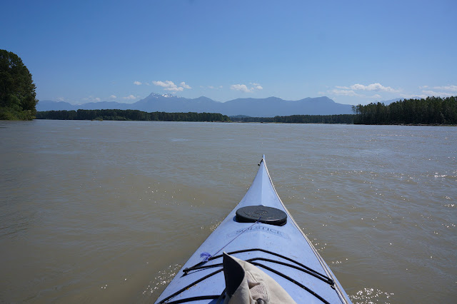 With strong inflow winds (=un-flyable for paragliders) in the Fraser Valley I thought it would be great to get in our kayaks again. And why not, after a hiatus of >8 months, start properly with a 7h/40km tour.